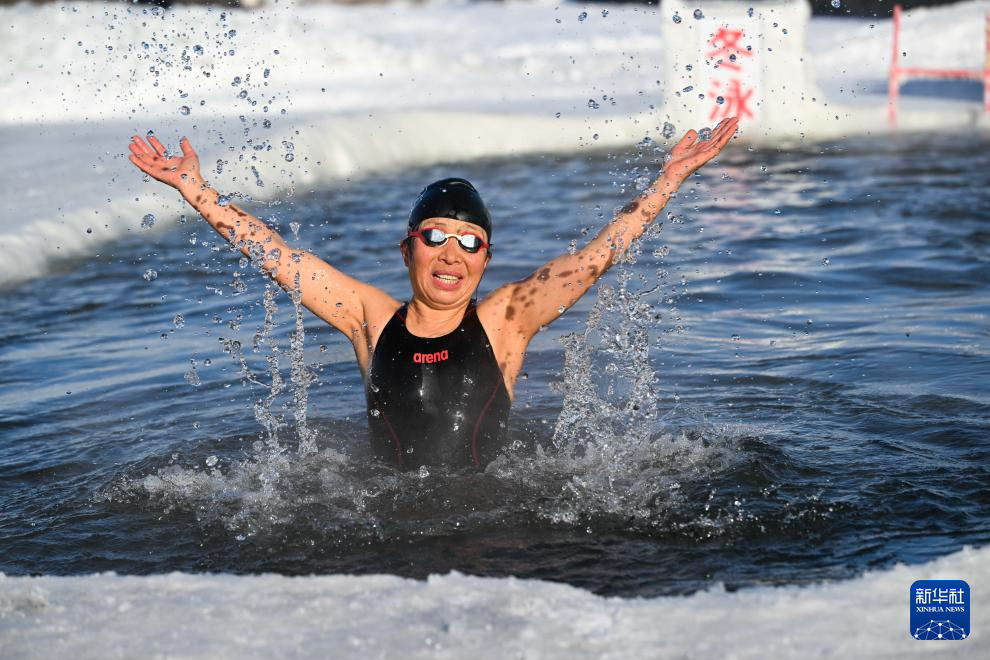 1月18日,市民在呼伦贝尔市伊敏河冬泳健身。新华社记者 刘磊 摄