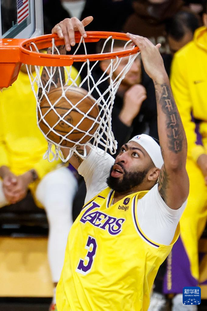 1月17日,湖人队球员安东尼·戴维斯在比赛中扣篮得分。新华社发(赵汉荣摄)