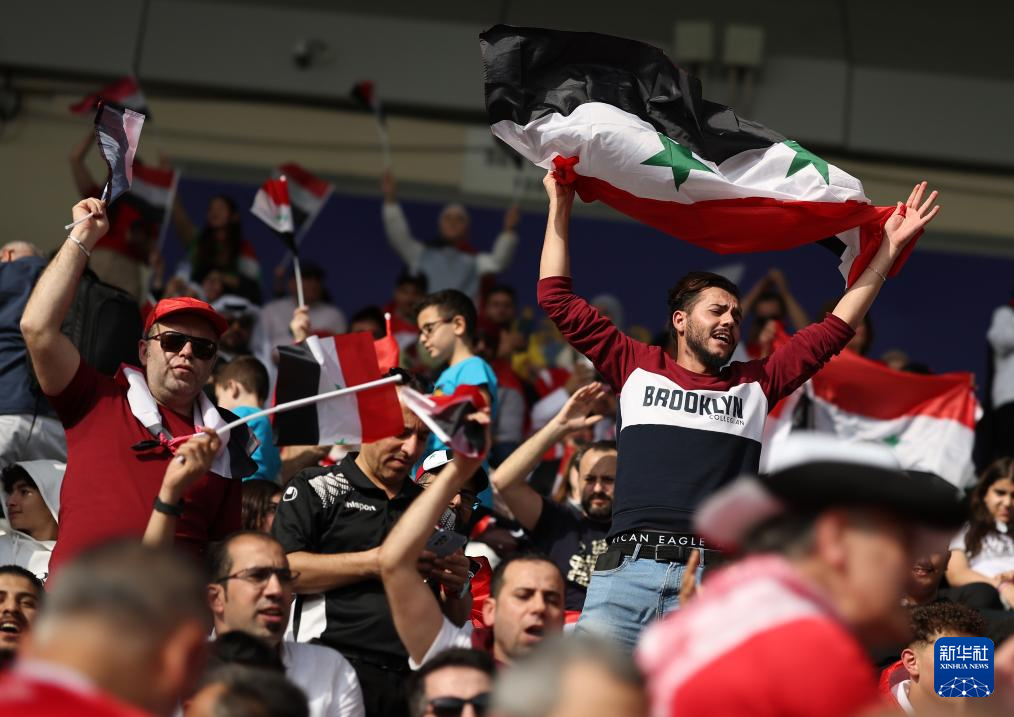1月18日,叙利亚队球迷在比赛前为球队加油助威。新华社记者 贾浩成 摄