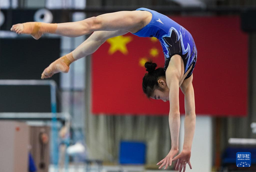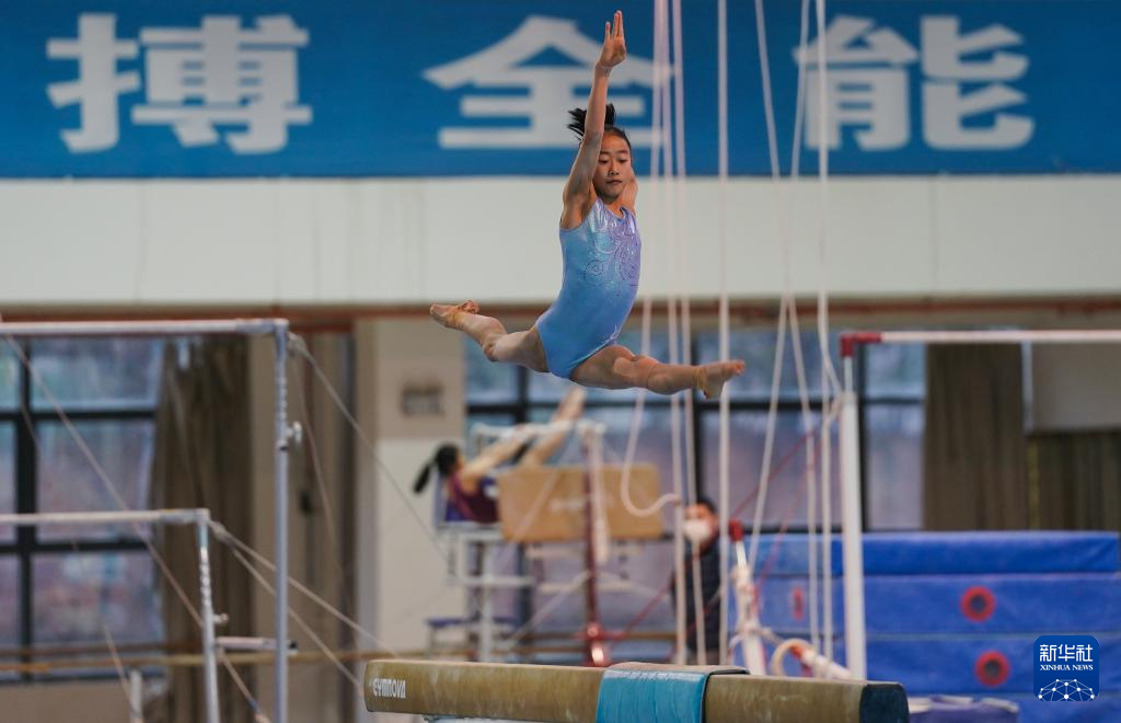 1月18日,在安徽体育运动职业技术学院体操训练馆,来自陕西队的陈紫嫣在训练中。新华社记者 杜宇 摄