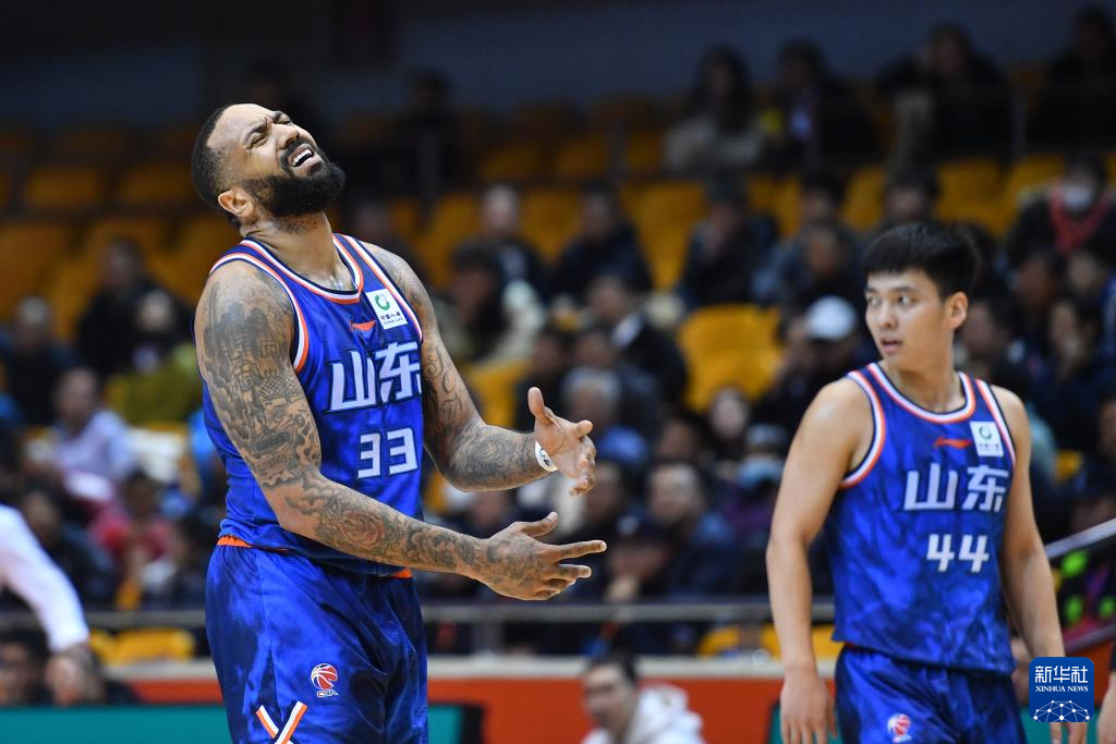 1月17日,山东高速队球员吉伦沃特(左)在比赛中。新华社记者 朱峥 摄