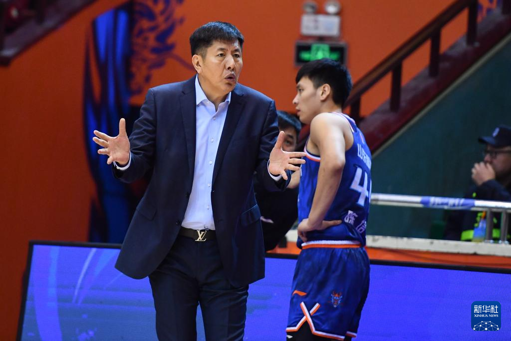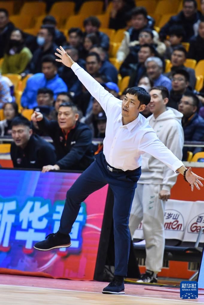 1月17日,天津先行者队主教练张庆鹏在比赛中指挥。新华社记者 朱峥 摄