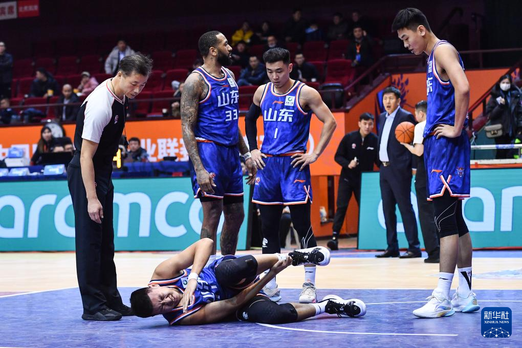 1月17日,山东高速队球员焦海龙(下)在比赛中受伤倒地。新华社记者 朱峥 摄