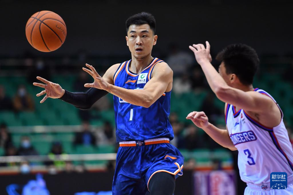 1月17日,天津先行者队球员罗切斯特(左)在比赛中传球。新华社记者 朱峥 摄