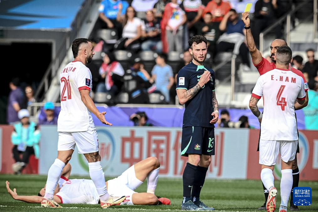1月18日,澳大利亚队球员艾登·奥尼尔(中)在比赛中被主裁判出示黄牌。新华社记者 江汉 摄