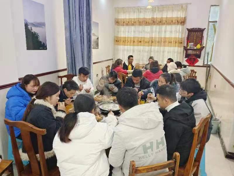2023年12月24日,在贵州省黔东南州榕江县塔石瑶族水族乡晶晶香羊馆,游客正在吃羊瘪火锅。(潘明燕 摄)