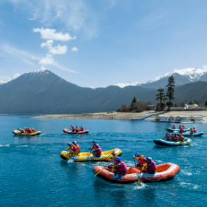 位于巴河上游高峡深谷中的巴松措以雪山、湖泊、森林、瀑布等景致闻名,是西藏首个自然风景类的国家5A级旅游风景区。然而,游客不远千里来到三千多米的高寒缺氧环境,若只是看山观湖,旅程似乎有些单调。于是,当地将时下流行的户外运动引入景区,中国漂流联赛便首次在巴松措落地。