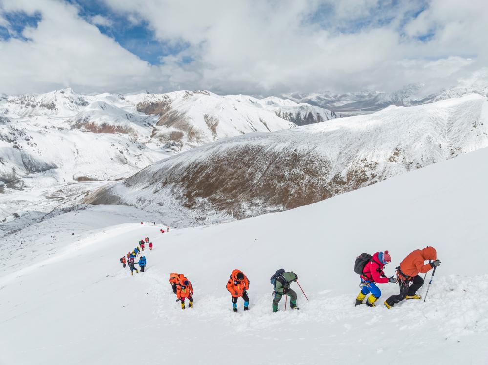 ↑2023年5月3日,登山爱好者正在攀登海拔6010米的洛堆峰。