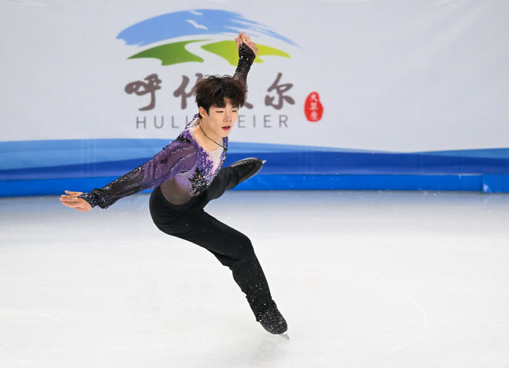 男子单人滑比赛中,北京队选手陈昱东以212.98分的总成绩夺得冠军。新华社记者 刘磊 摄