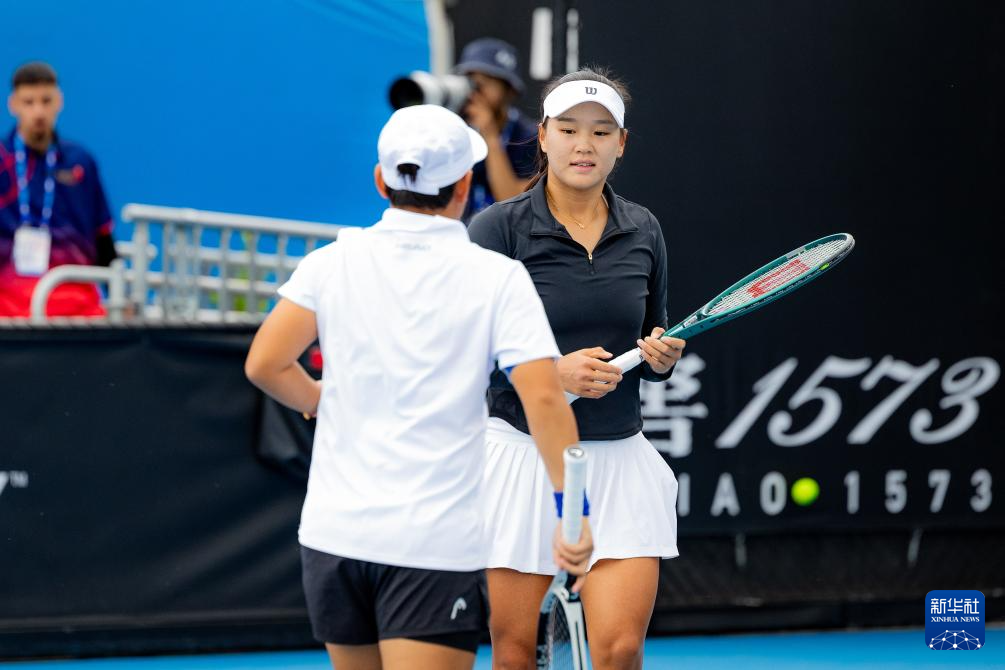 当日,在墨尔本进行的2024年澳大利亚网球公开赛女双第二轮比赛中,中国组合郭涵煜/蒋欣玗2比0战胜日本组合穗积惠理/二宫真琴,晋级第三轮。