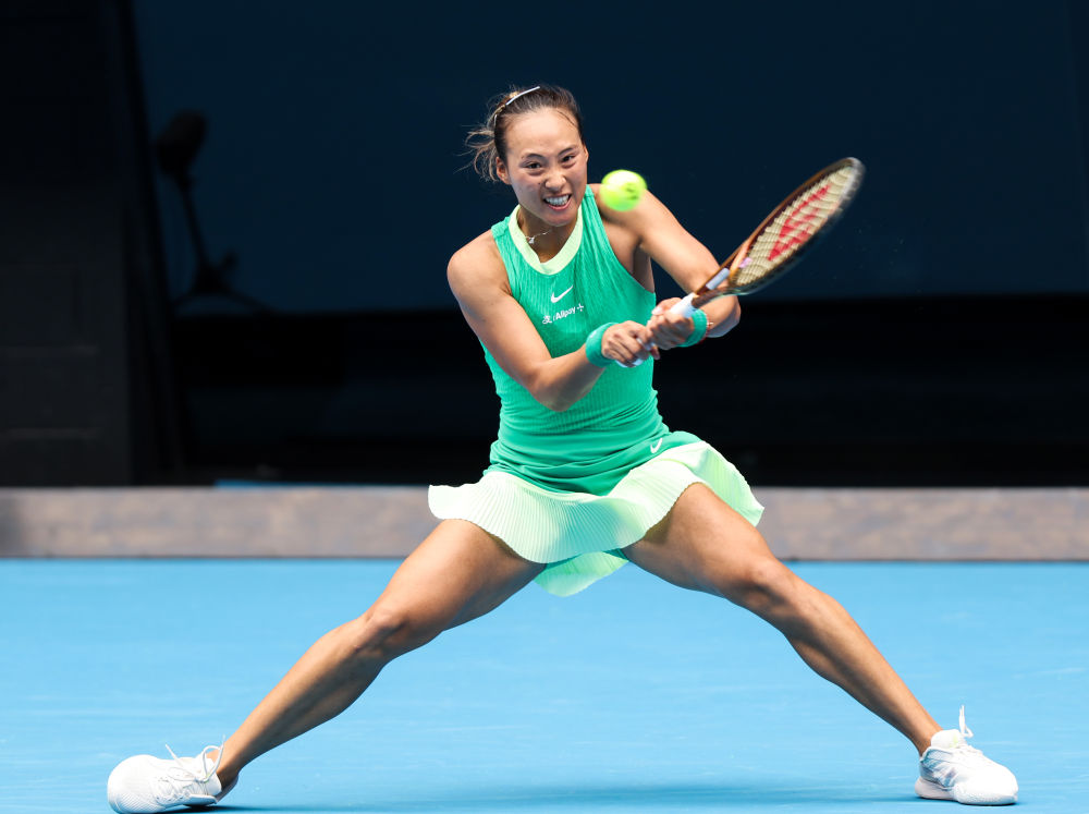 1月20日,郑钦文在比赛中回球。新华社记者 马平 摄