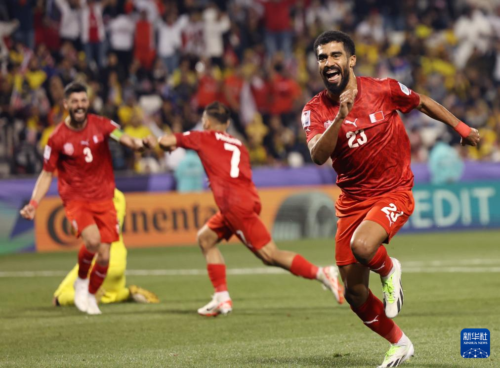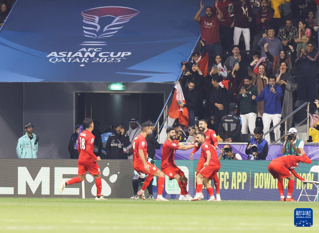 1月20日,巴林队球员在比赛中庆祝进球。新华社记者 丁汀 摄