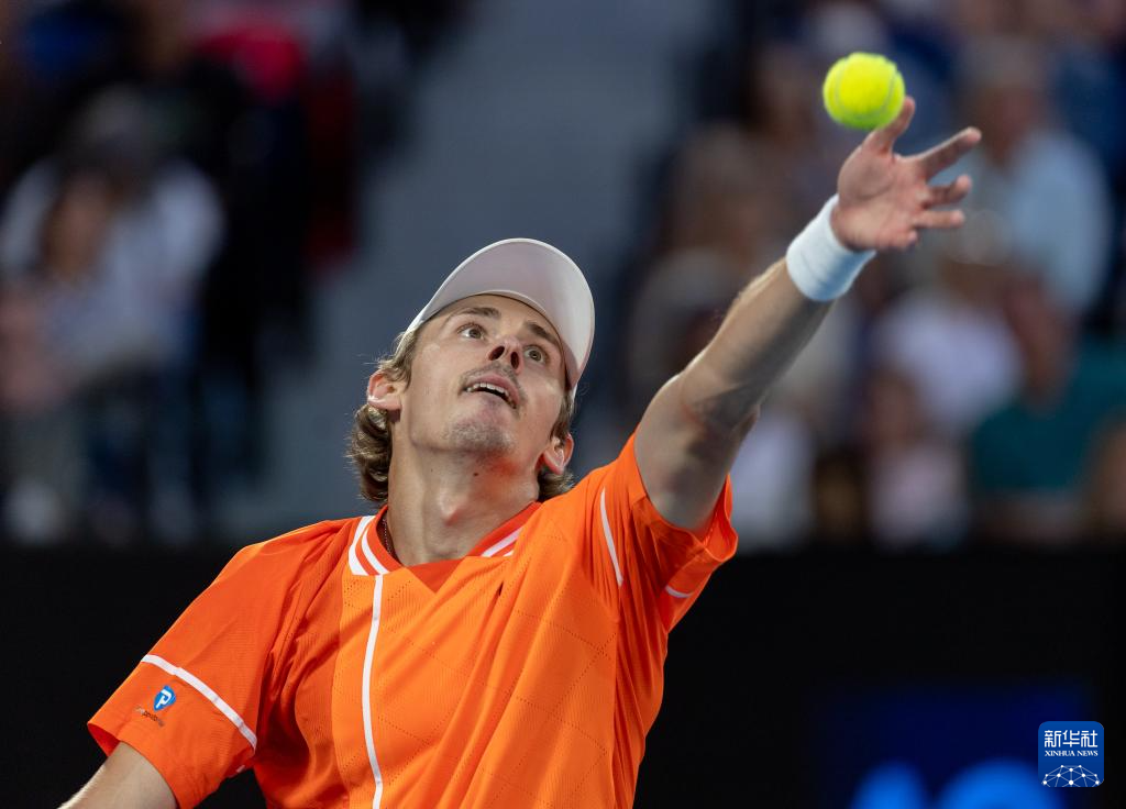 1月21日,德米纳尔在比赛中发球。新华社发(胡泾辰摄)