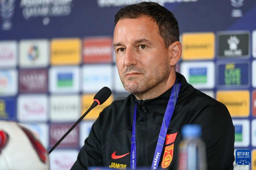 1月21日,中国队主教练亚历山大·扬科维奇在赛前新闻发布会上。新华社记者 江汉 摄