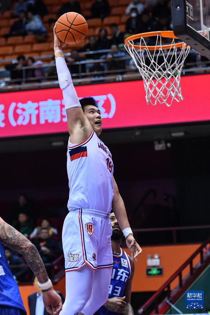 1月22日,广州龙狮队球员焦泊乔在比赛中扣篮。新华社记者 朱峥 摄