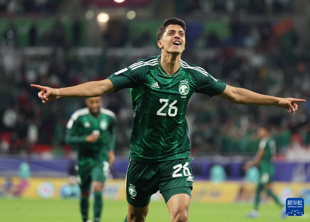 1月21日,沙特阿拉伯队球员费萨尔·加姆迪在进球后庆祝。新华社记者 贾浩成 摄