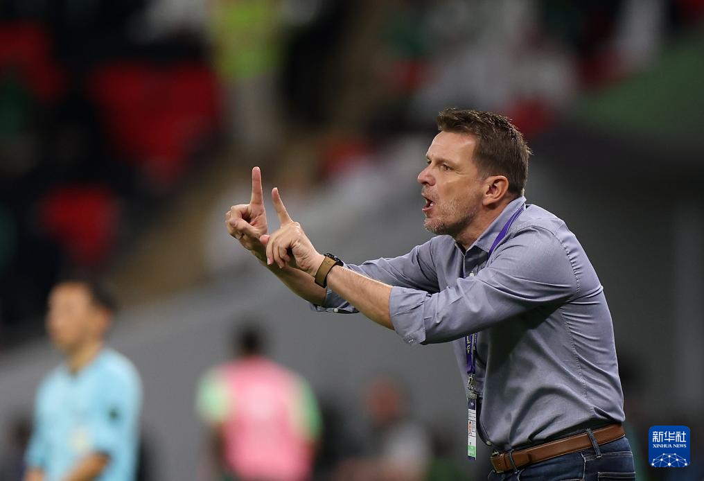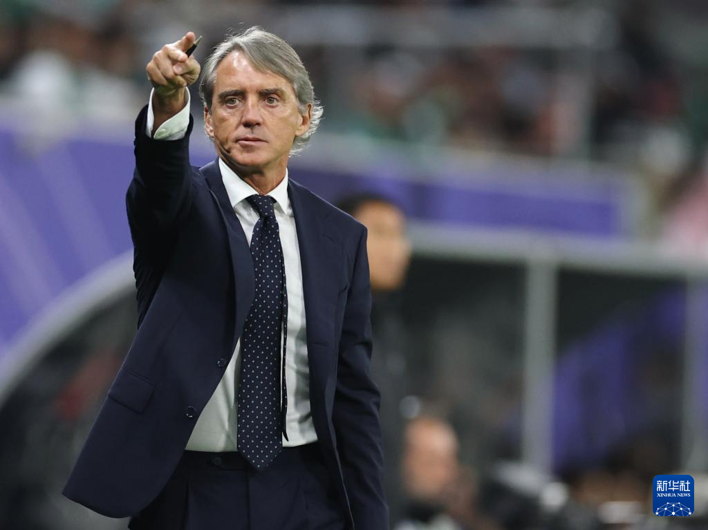1月21日,沙特阿拉伯队主教练罗伯托·曼奇尼在场边指挥。新华社记者 贾浩成 摄