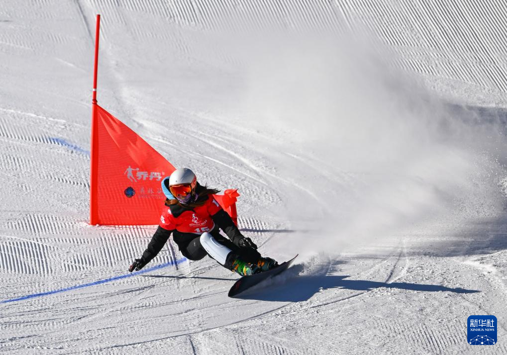 1月22日,吉林队选手王子怡在单板滑雪青年组女子平行大回转预赛中。新华社记者刘磊摄