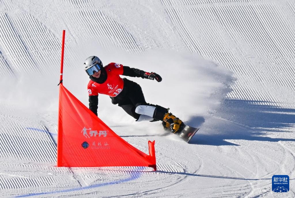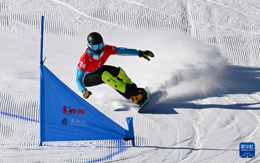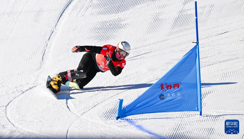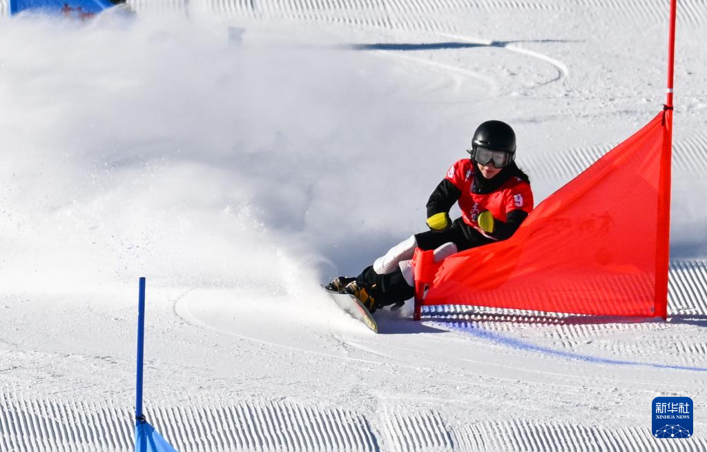 1月22日,内蒙古队选手刘文婕在单板滑雪青年组女子平行大回转预赛中。新华社记者刘磊摄