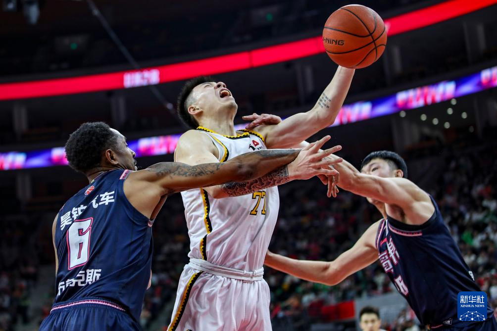 1月21日,广东华南虎队球员张文逸(中)在比赛中远投三分球。新华社发(郑家雄摄)