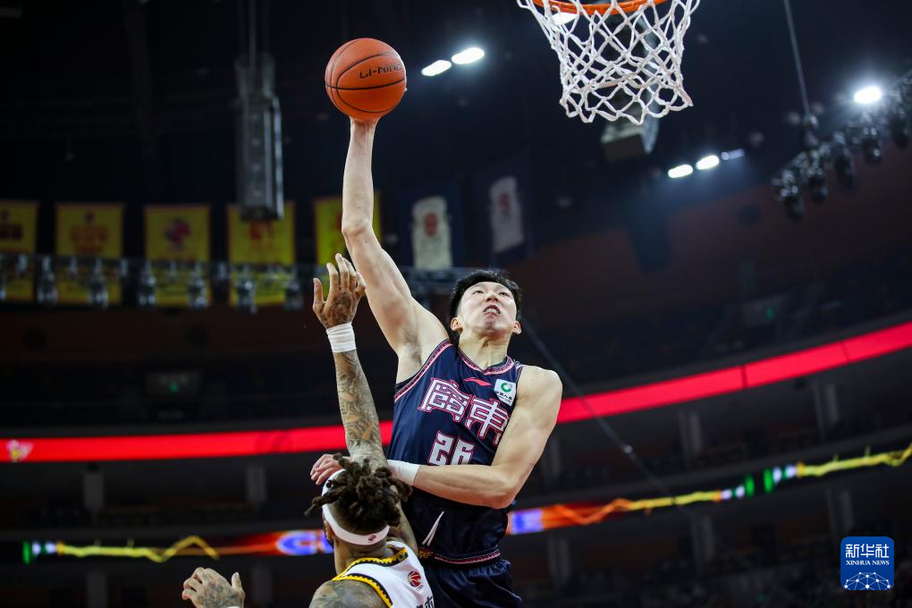1月21日,广东华南虎队球员周琦在比赛中上篮。新华社发(郑家雄摄)