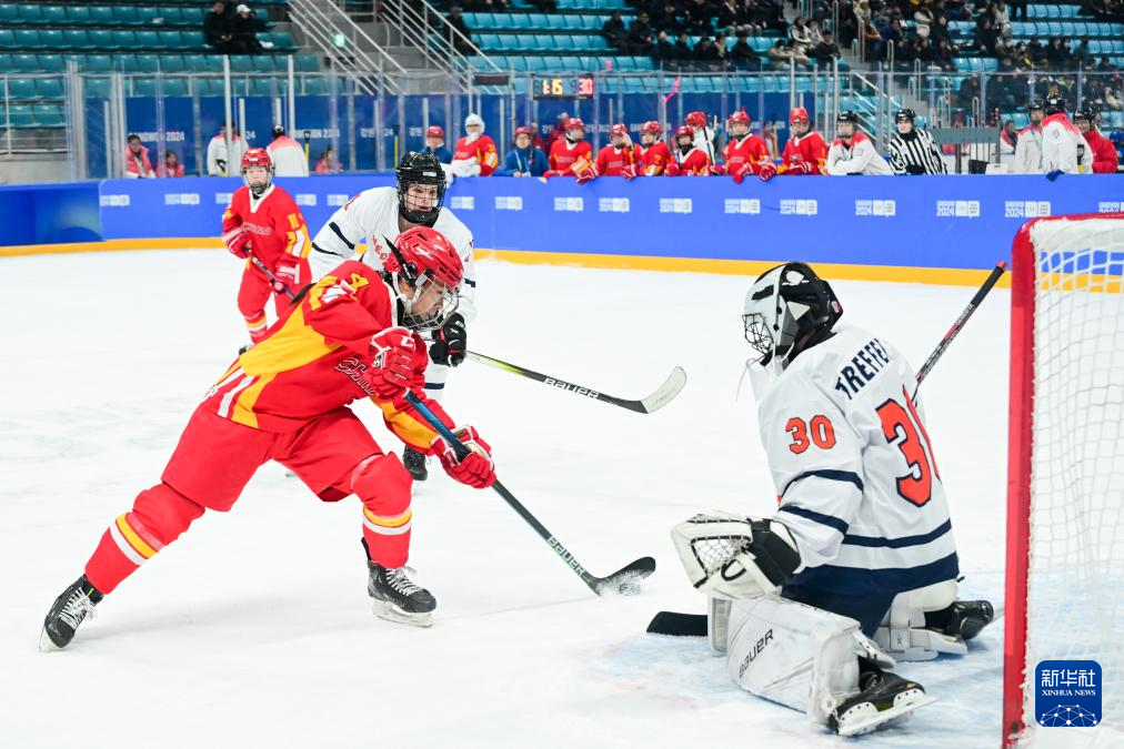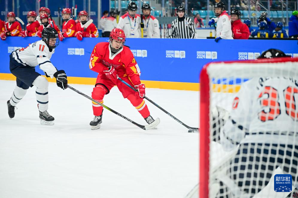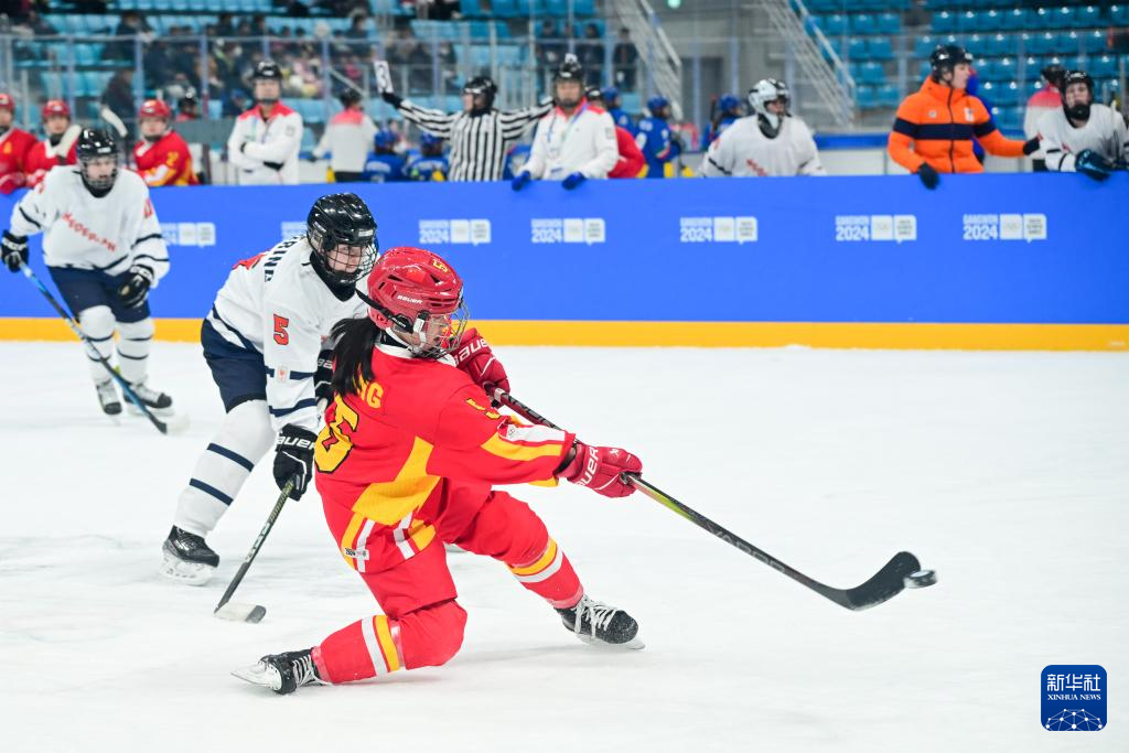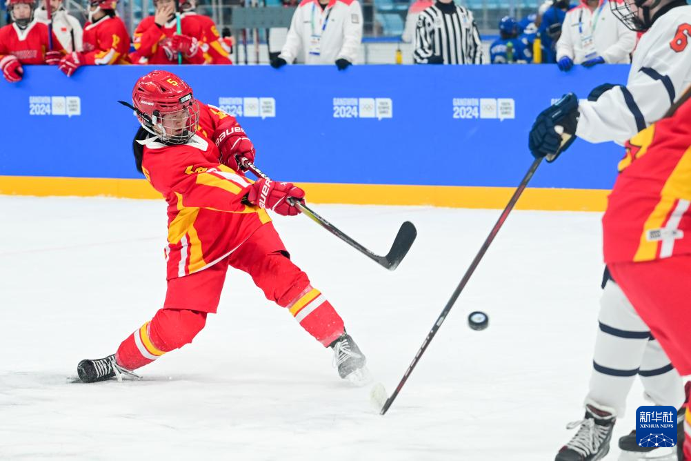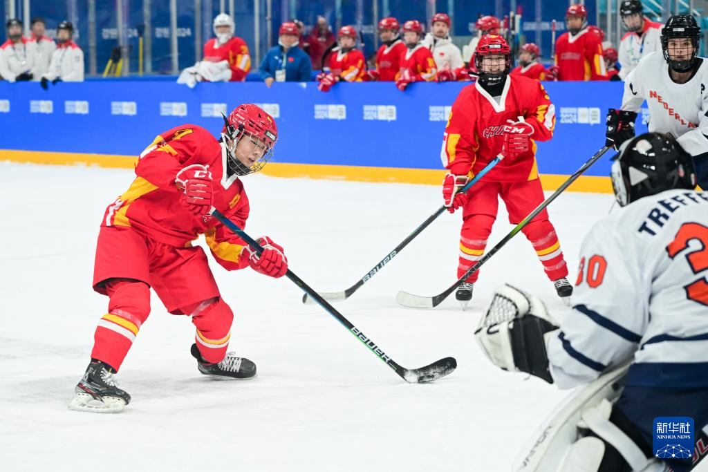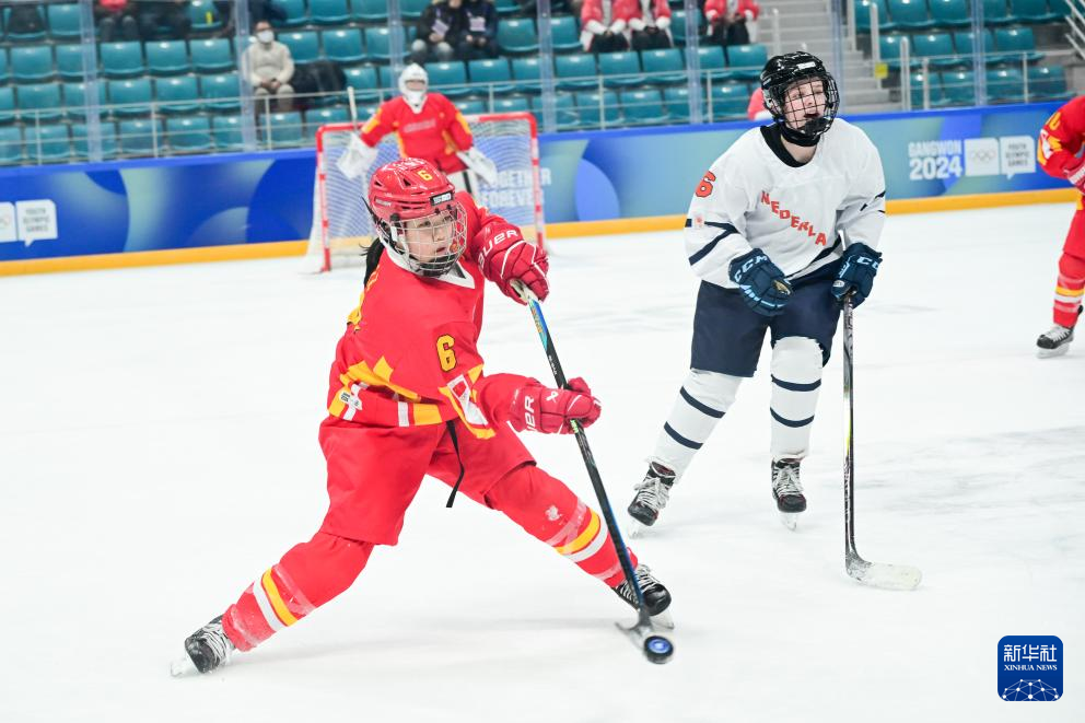 当日,在韩国江陵进行的2024年江原道冬青奥会女子冰球3对3预赛中,中国队17比0战胜荷兰队。