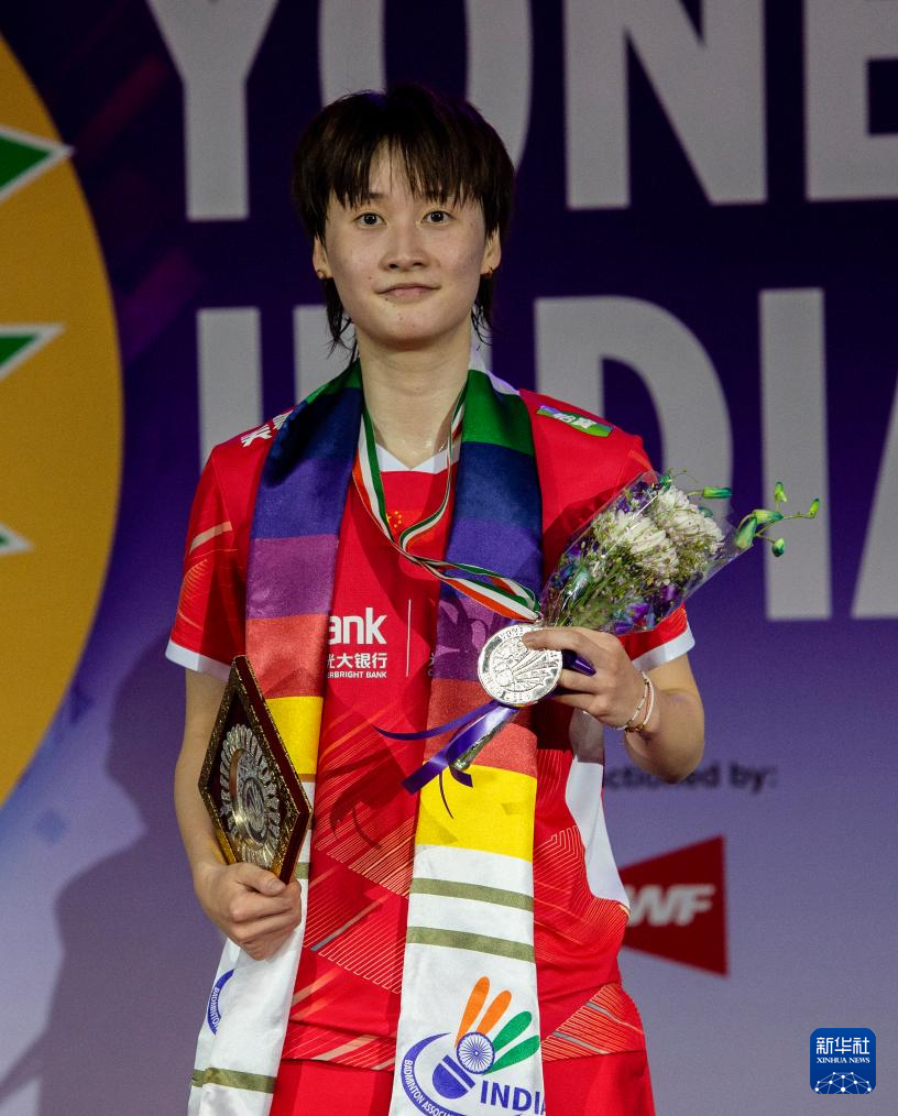 1月21日,亚军中国选手陈雨菲在颁奖仪式上。新华社发(贾韦德·达尔摄)