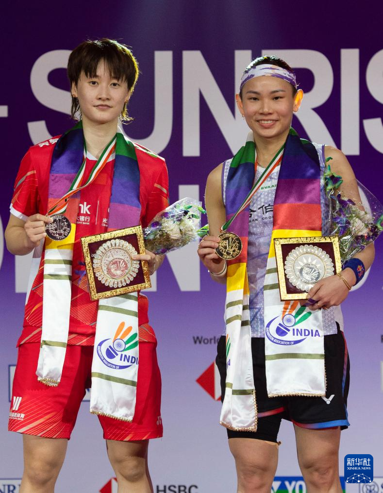 1月21日,冠军中国台北选手戴资颖(右)和亚军中国选手陈雨菲在颁奖仪式上。新华社发(贾韦德·达尔摄)
