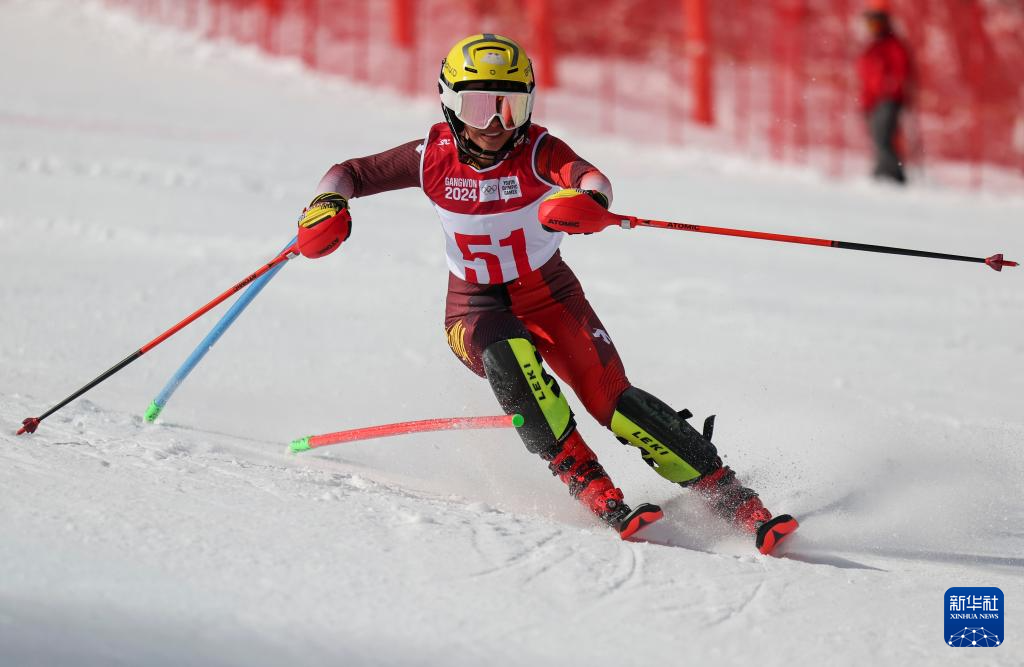 当日,2024年江原道冬青奥会高山滑雪女子全能比赛在韩国旌善举行。