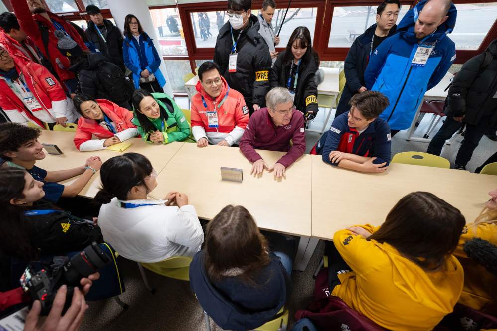 在江原道冬青奥会期间,国际奥委会主席巴赫、张虹等与青少年运动员交流。受访者供图