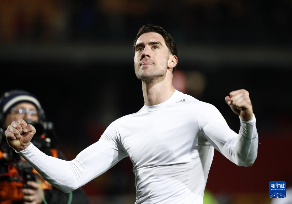 1月21日,尤文图斯队球员弗拉霍维奇在赛后庆祝。新华社发(费代里科·塔尔迪托摄)