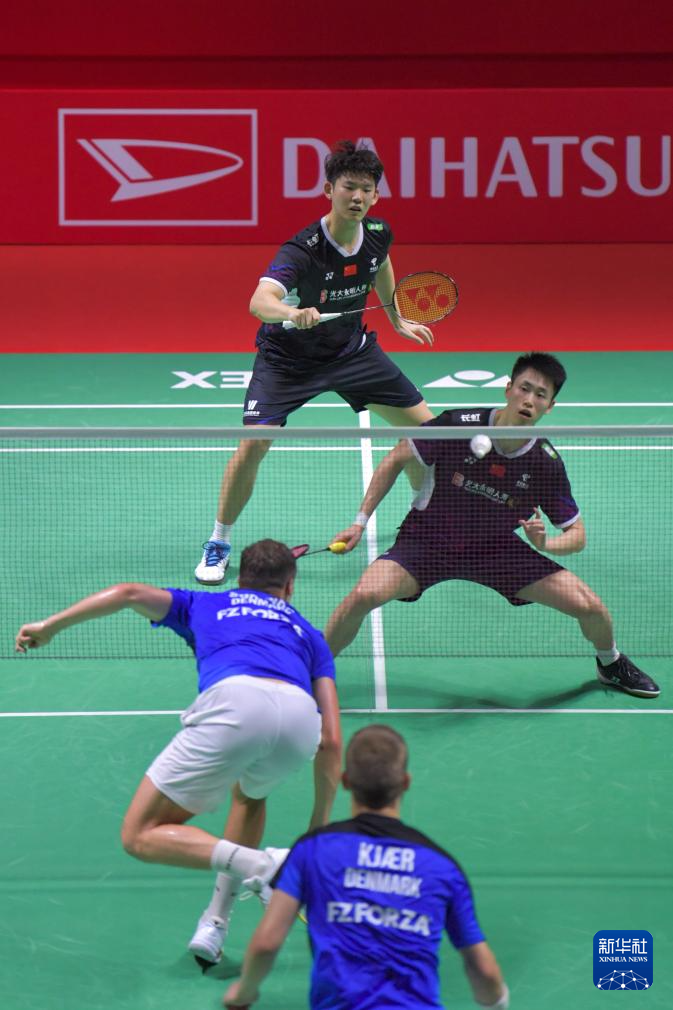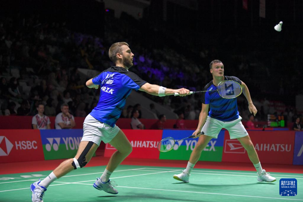 1月23日,丹麦组合克亚尔(左)/索加德在比赛中。新华社记者 徐钦 摄