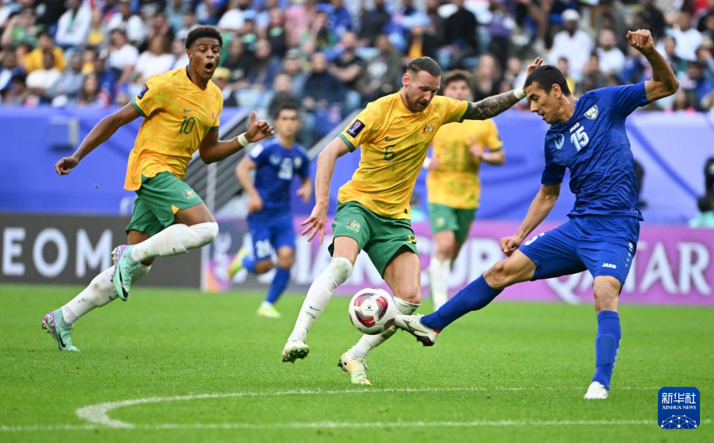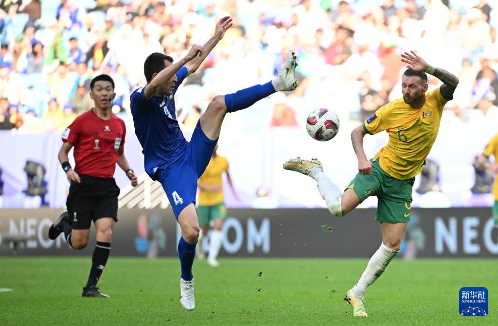 当日,在卡塔尔贾努布球场举行的男足亚洲杯小组赛B组比赛中,澳大利亚队对阵乌兹别克斯坦队 。