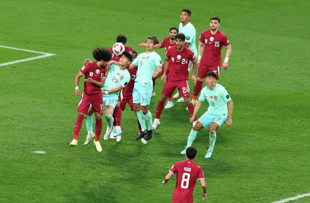 但随着比赛推进,卡塔尔球员的技术优势开始显现,他们敢于将球控在脚下,在中前场进行小范围传导,并抓住国足中场和后卫之间的空当,把比赛带回自己的节奏。对比来看,国足对于地面配合推进信心不足,进攻主要还是靠中后场球员长传直接找锋线,但这种打法的配合成功率低,感觉就像“有劲儿使不上”。