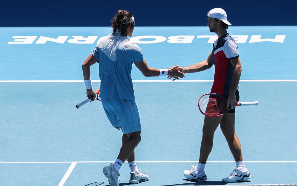 1月23日,张之臻(左)/马哈奇在比赛中。新华社发(胡泾辰 摄)