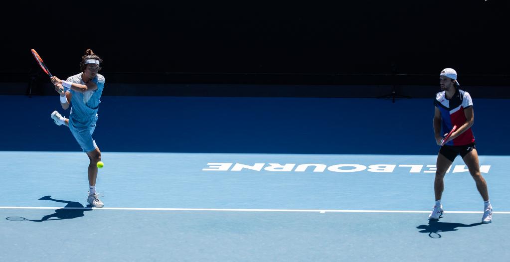 1月23日,张之臻/马哈奇(右)在比赛中。新华社发(胡泾辰 摄)