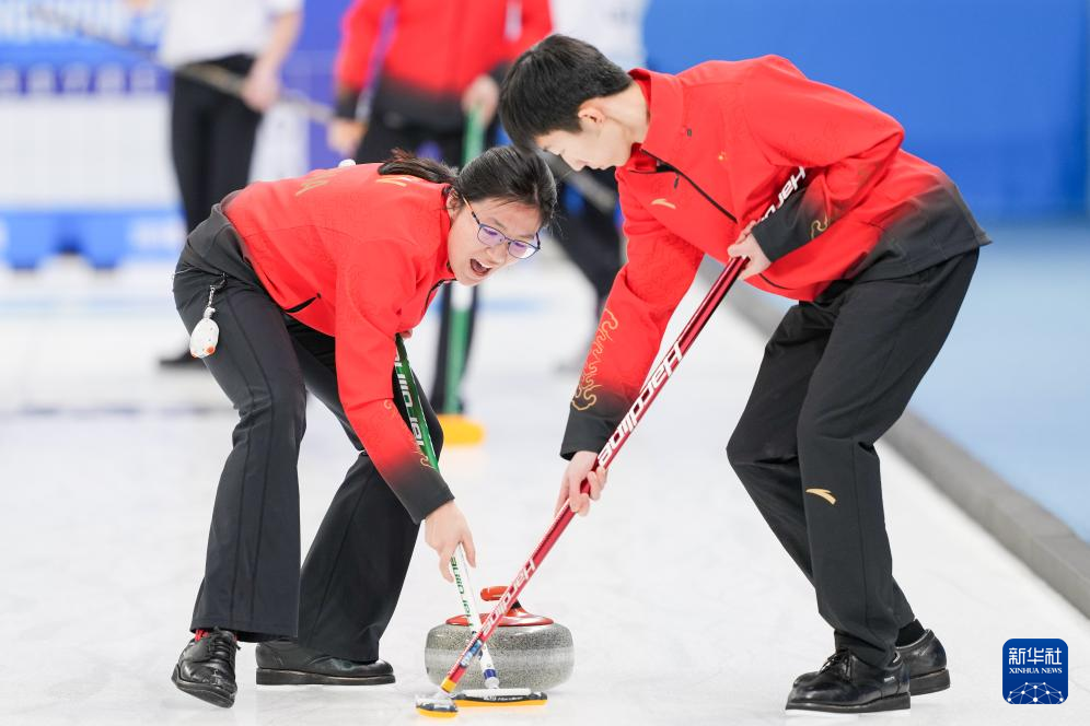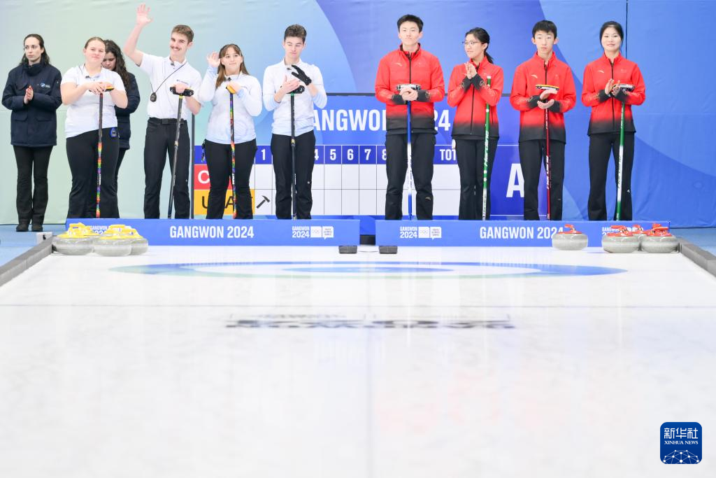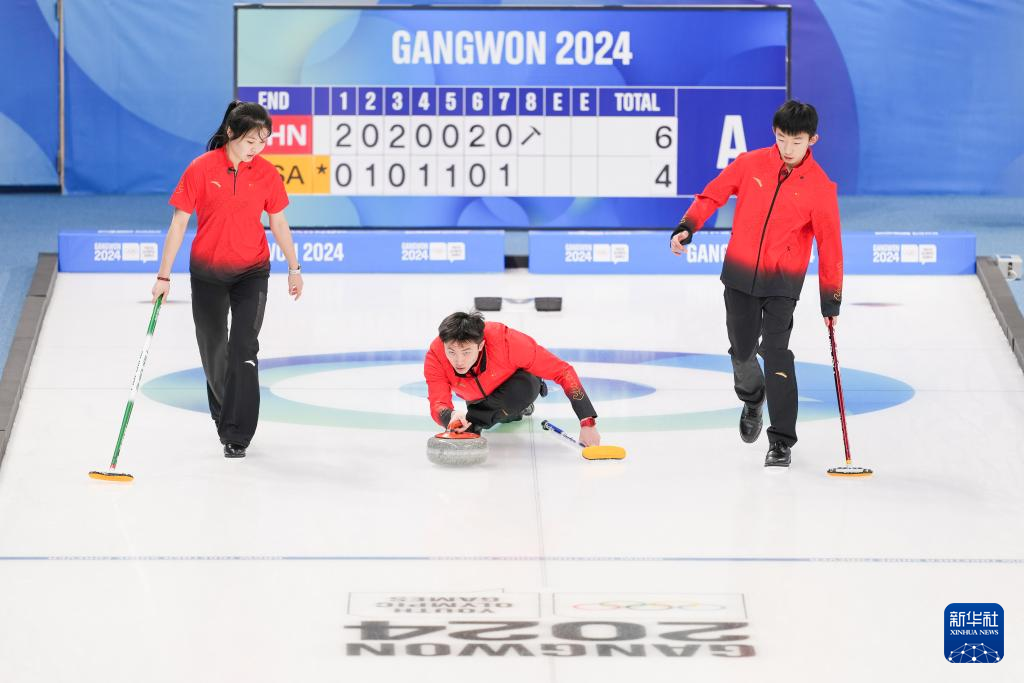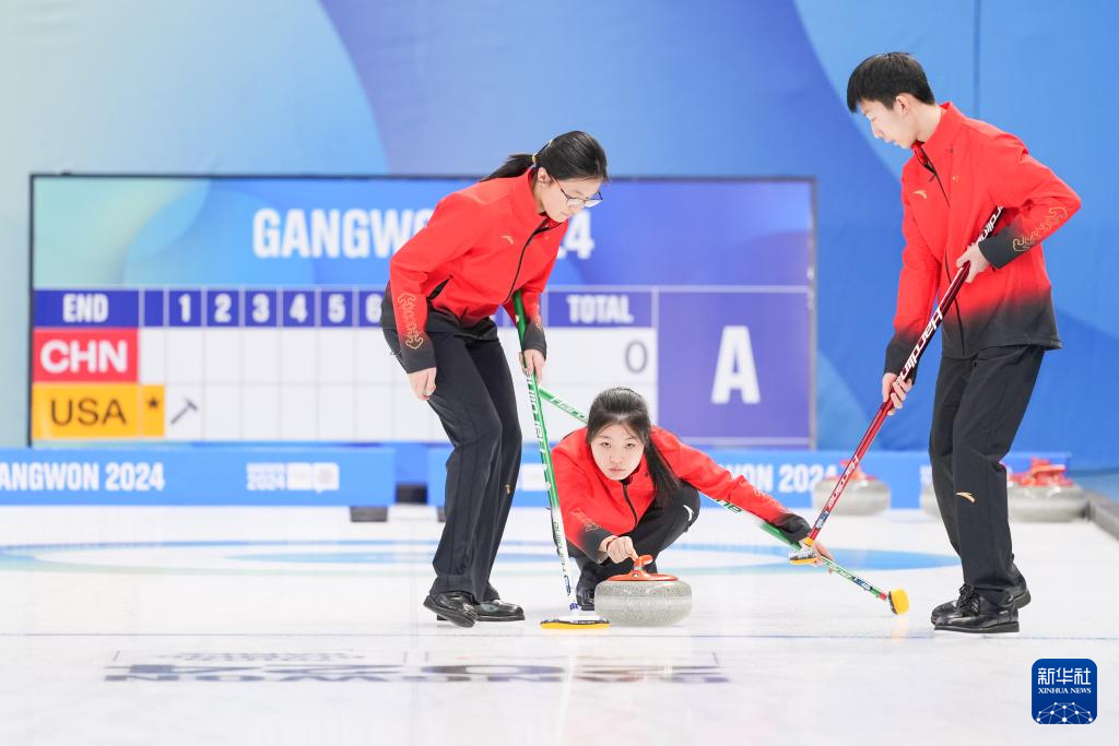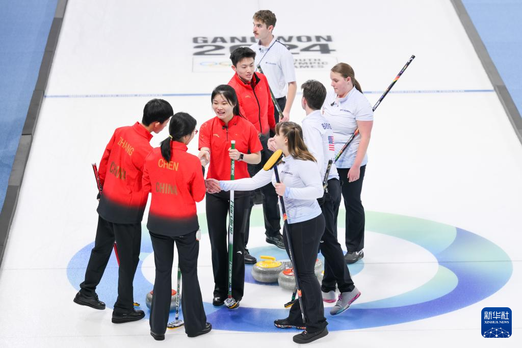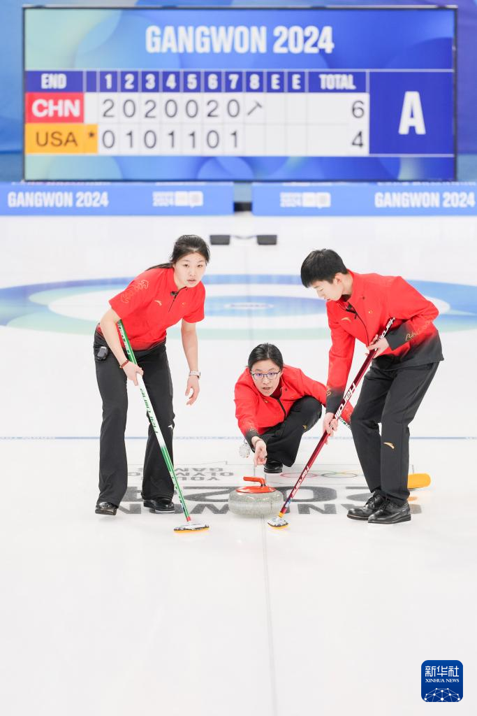 当日,在韩国江陵举行的2024年江原道冬青奥会冰壶混合团体循环赛中,由李泽泰、陈早雪、张鸣航和高雅组成的中国队以6比5的比分战胜美国队。