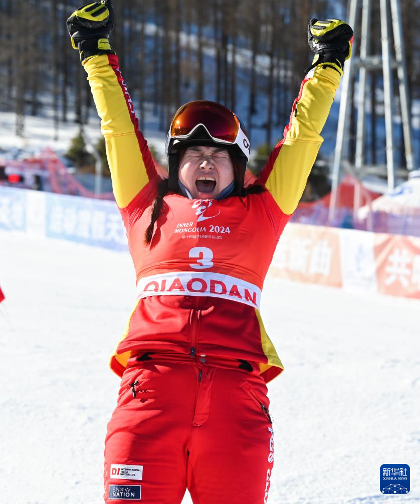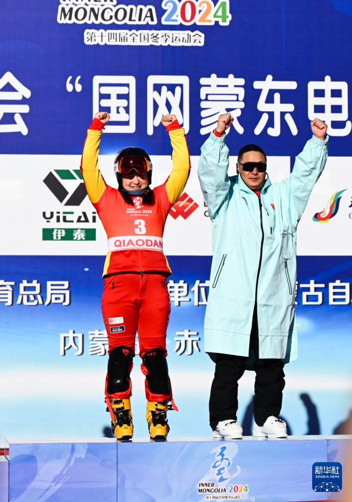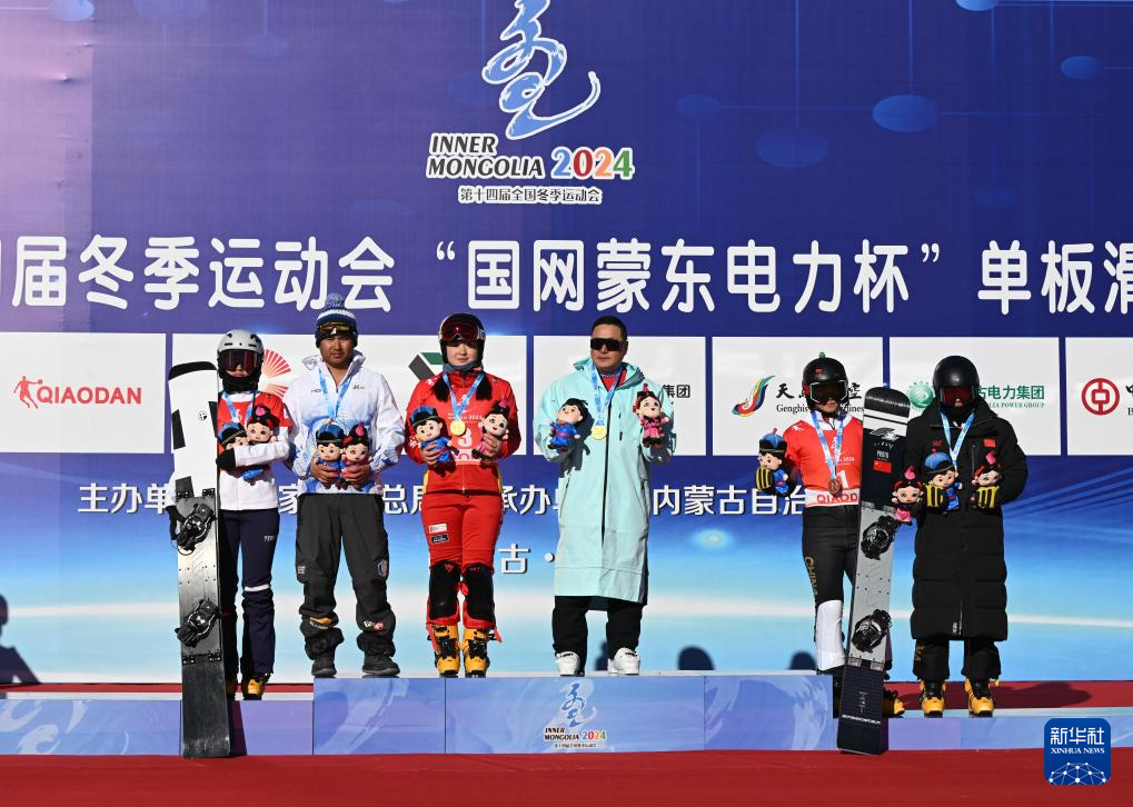 当日,在内蒙古赤峰喀喇沁旗举行的第十四届全国冬季运动会单板滑雪公开组女子平行大回转比赛中,吉林队选手牛佳琪获得冠军,湖北队选手白欣卉获得亚军,内蒙古队选手宫乃莹获得季军。