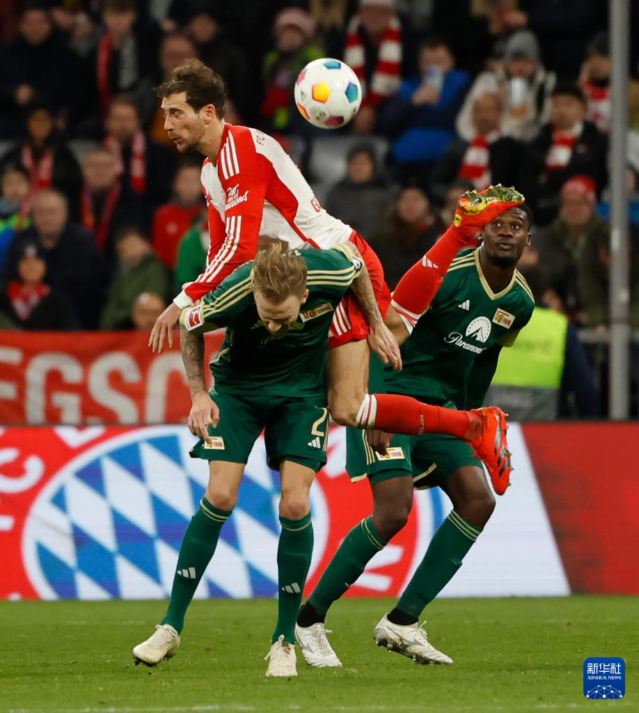 1月24日,拜仁慕尼黑队球员格雷茨卡(上)在比赛中争顶头球。新华社发(菲利普·鲁伊兹摄)