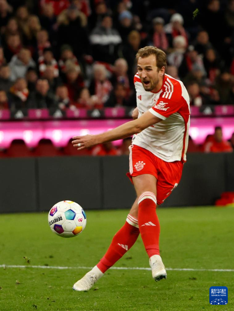 1月24日,拜仁慕尼黑队球员凯恩在比赛中射门。新华社发(菲利普·鲁伊兹摄)