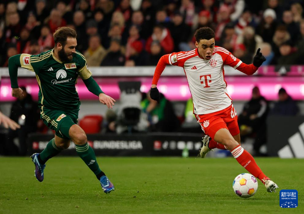 1月24日,拜仁慕尼黑队球员穆夏拉(右)在比赛中突破。新华社发(菲利普·鲁伊兹摄)