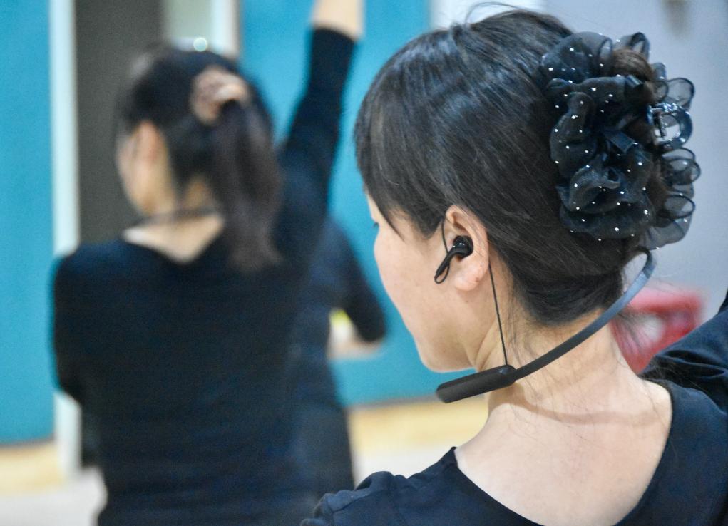 上海一处长者运动之家的工作人员在指导老人进行拉伸训练↑
