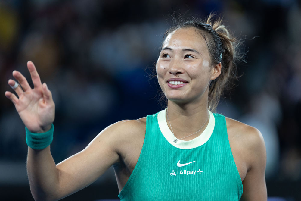1月24日,郑钦文在比赛后向观众致意。新华社发(储晨摄)