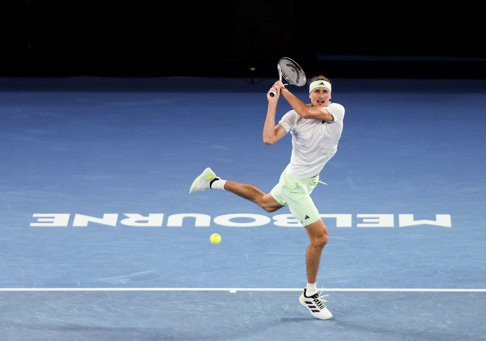 1月24日,兹韦列夫在比赛中回球。新华社记者 马平 摄