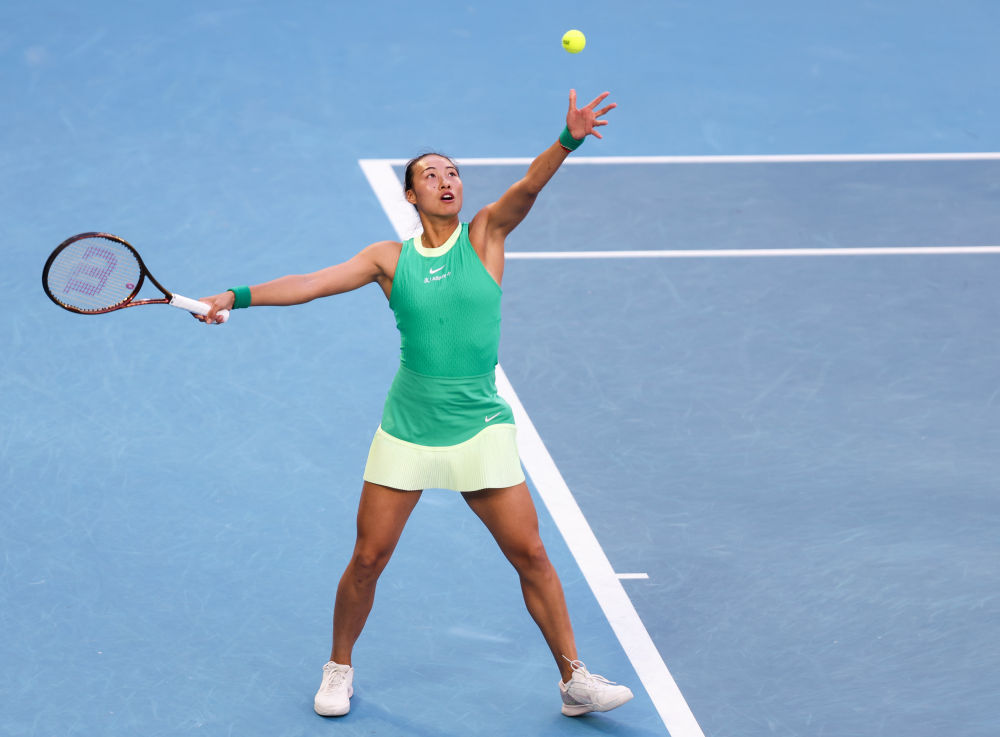 1月24日,郑钦文在比赛中发球。新华社记者 马平 摄