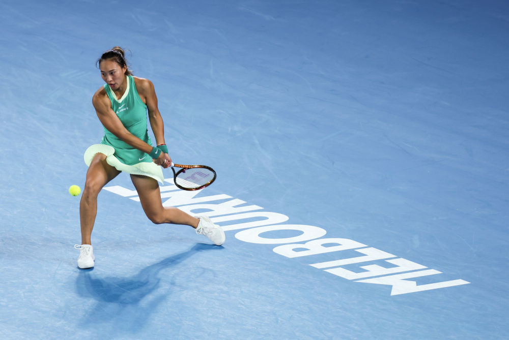1月25日,郑钦文在比赛中回球。新华社记者 马平 摄