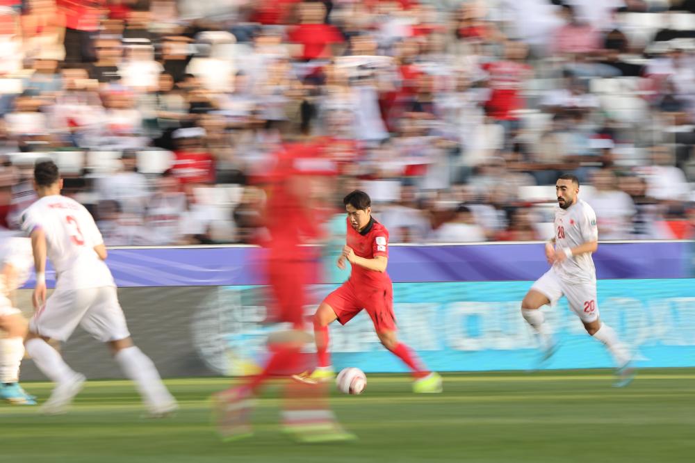 1月15日,韩国队球员李刚仁(中)在对阵巴林队的比赛中突破。新华社记者 曹灿 摄