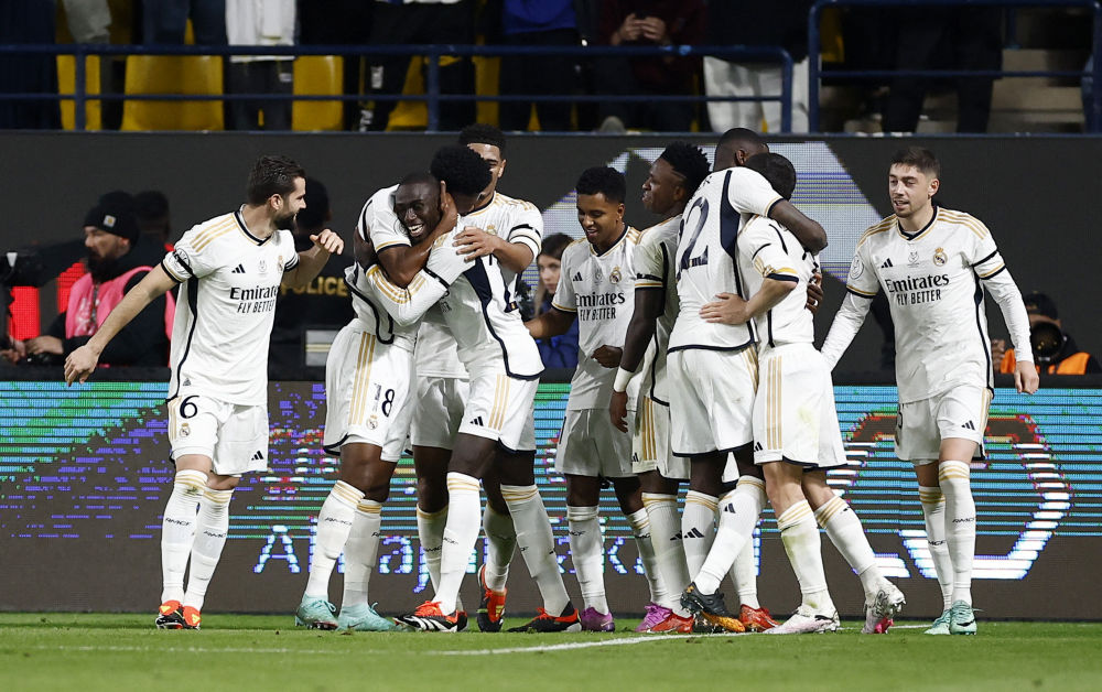 1月10日,皇马队球员在西班牙超级杯半决赛中庆祝进球。新华社/路透