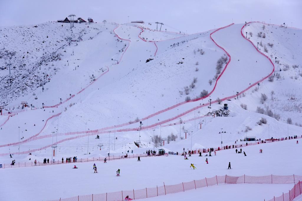 2023年12月31日,雪友在新疆阿勒泰将军山国际滑雪度假区滑雪。新华社记者 张啸诚 摄