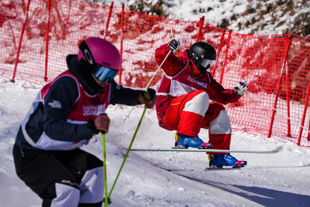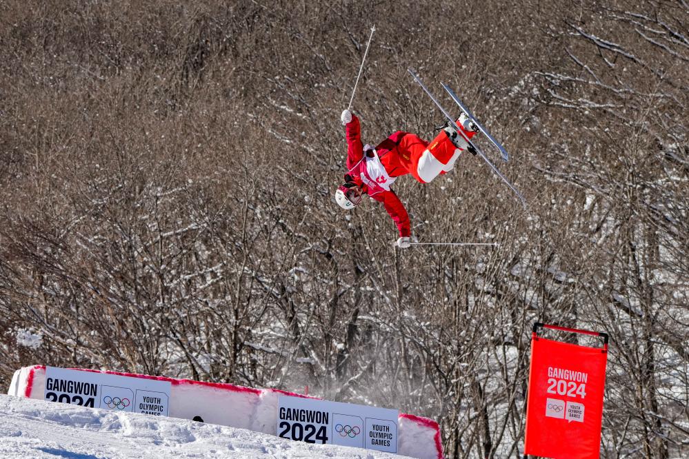冬青奥会历史上首场自由式滑雪雪上技巧比赛当日在旌善赛区举行。在双人雪上技巧混合团体比赛中,中国选手黎睿霖和龙昊组队参赛,他们在八分之一决赛中以两分之差不敌韩国组合,无缘晋级。美国队获得冠军。